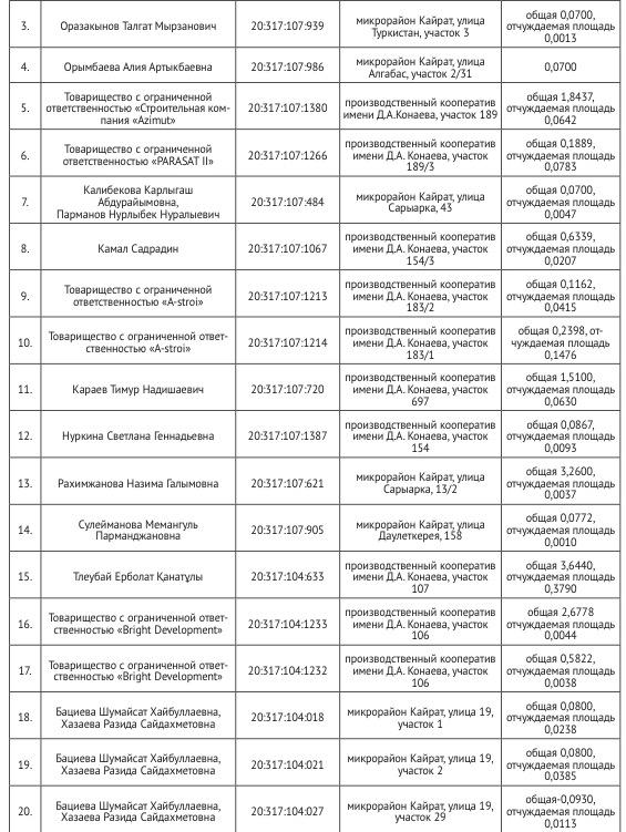 Ранее стало известно, что в Алматы изымут 52 участка для строительства нового вокзала. Срок завершения процедуры принудительного отчуждения установили до 31 декабря 2028 года. Компенсацию выплатят в установленном законом порядке.