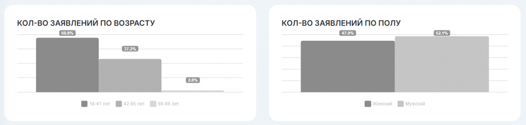 Из 64 тысяч граждан, подавших заявления на внесудебное банкротство, лишь 4,1% – получатели адресной социальной помощи (АСП). Большинство должников – трудоспособные молодые люди: 60,8% заявителей находятся в возрасте от 18 до 41 года. Мужчин среди них немного больше, чем женщин – 52,1%.