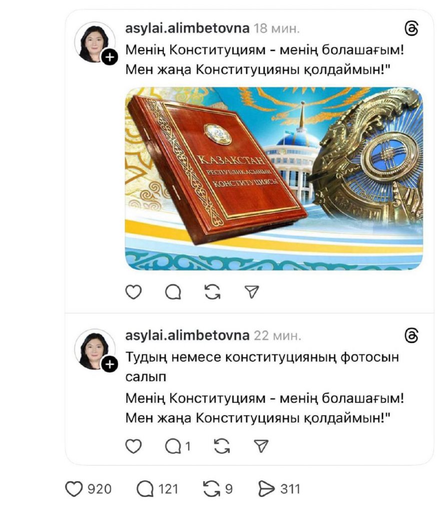 Имашева отметила, что такие публикации казахстанцы должны делать только по собственной воле.
