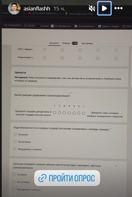 Арсен Сарсеков назвал происходящее подменой понятий. Когда интерактивный опрос в личном аккаунте подаётся как «общественное мнение», а эмоция – как аналитика. По сути речь идёт не об исследовании, а о самоотражении замкнутой аудитории. Там, где ответы заранее предсказуемы, потому что люди подписались друг на друга именно по совпадению взглядов.