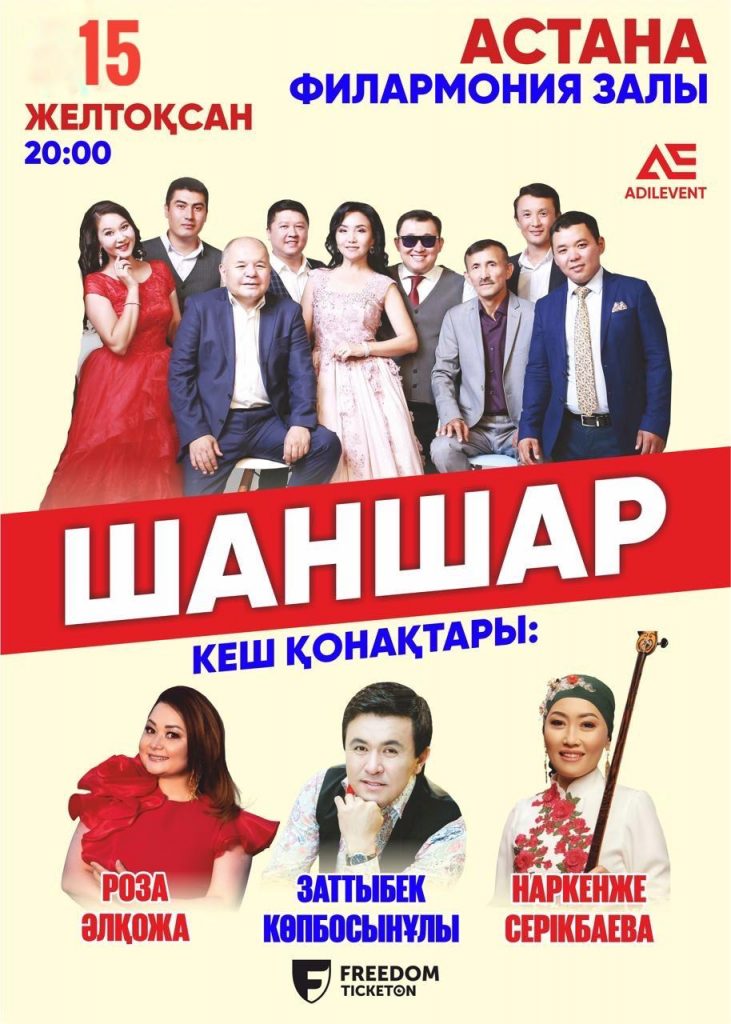 - «Ән мен Әншi» (Государственная академическая филармония им Е.Рахмадиева, 19:00). Билеты от 7 000 тенге.