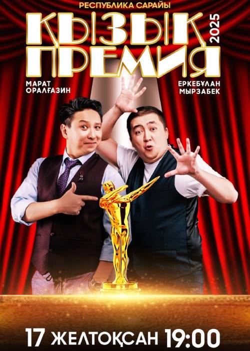 Авторы и ведущие проекта «Қызық премия» Марат Оралгазин и Еркебулан Мырзабек наградят всех, кто целый год был в эпицентре событий и создавал повод для хорошего настроения (обсуждаемые персоны года, звёзды эстрады, популярные политики, а также личности, которые случайным образом стали звёздами социальных сетей). Дворец Республики, пр. Достык, 56, 19:00. Билеты от 15 000 тенге.