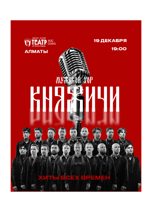 - Легендарные мелодии XX и XXI веков исполнит мужской хор «Княжичи» (театр «Жас Сахна», пр. Абая 117,19:00). Билеты от 5 000 тенге.