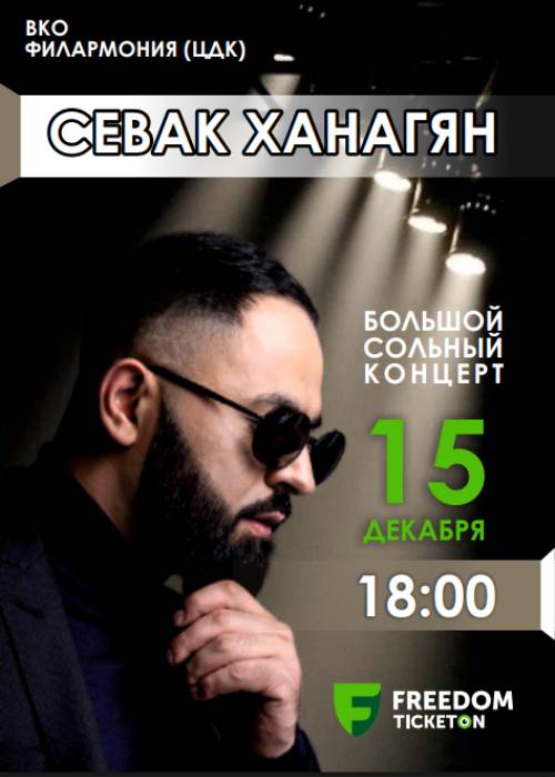 Победитель VII сезона «Х-Фактор» (Украина) и представитель Армении на «Евровидении-2018» Севак Ханагян выступит с сольным концертом в Усть-Каменогорске (областная филармония, ул. Протозанова, 43, 18:00). Билеты от 19 000 тенге.
