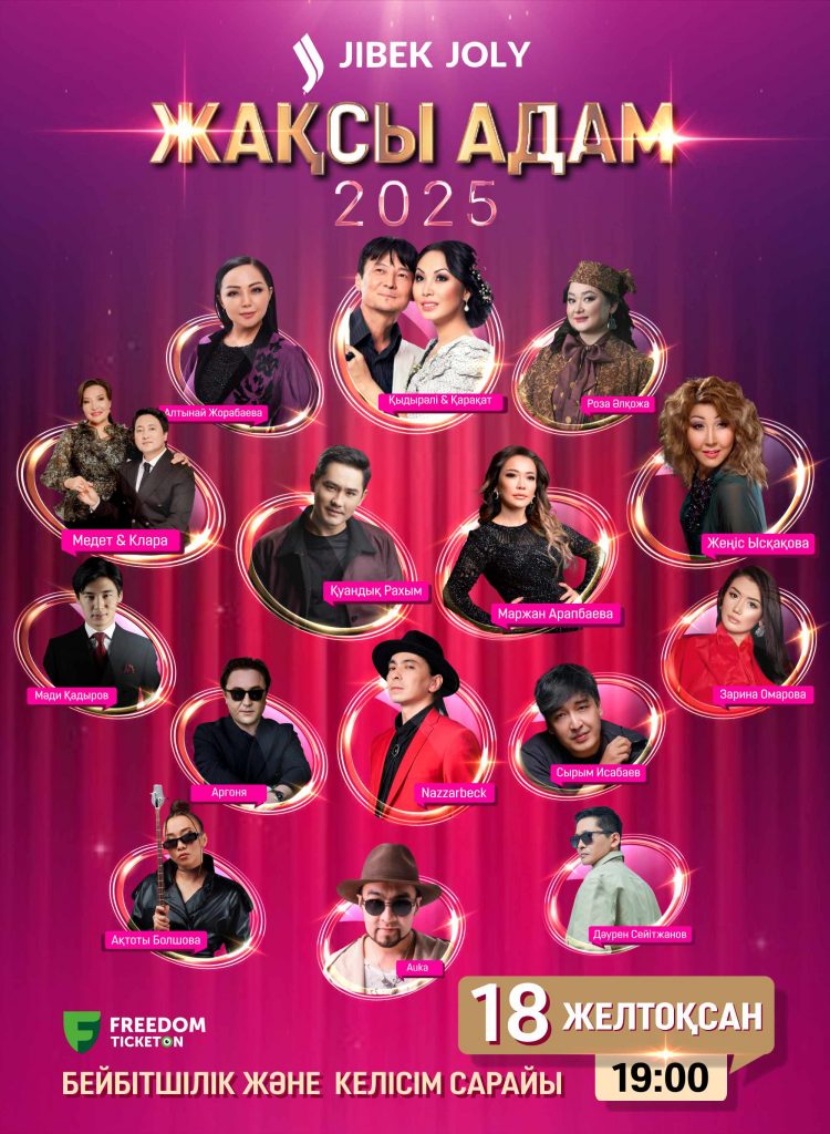 - Премия «Жаксы адам-2025» (Дворец мира и согласия, пр. Тауелсиздик 57, 19:00). Билеты от 3 000 тенге.