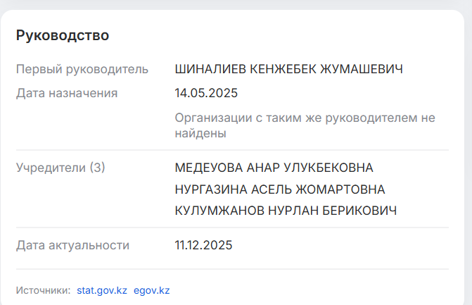 Согласно Кompra.kz, ТОО «Жетісу Газ құбыры» существует на рынке 15 лет. Главный офис расположен в селе Бесагаш Талгарского района. Зарегистрировали компанию в 2010 году. Нового руководителя Кенжебека Шиналиева назначили недавно – в мае 2025 года.