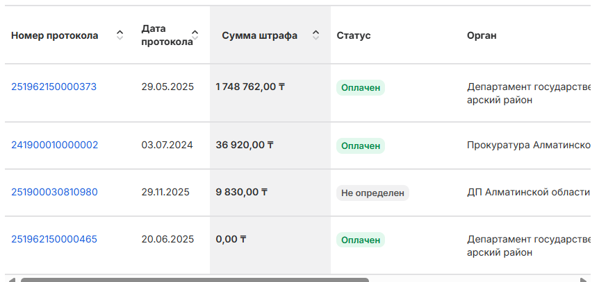 Среди факторов риска – административные правонарушения. Три из них – за 2025 год. Общая сумма взысканных с ТОО штрафов около – 1 800 000 тенге.