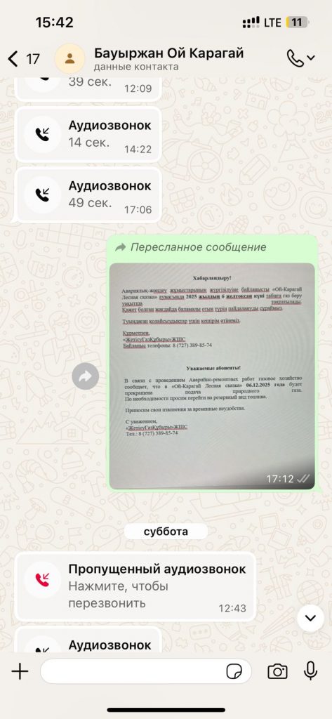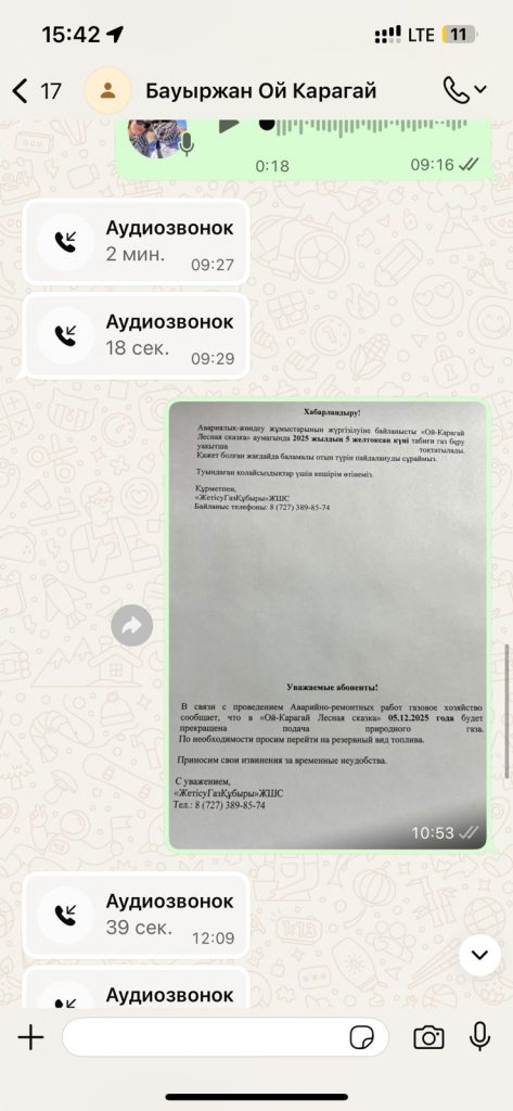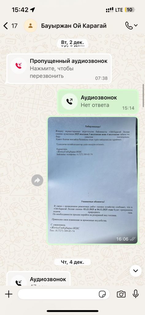 «Нам заменили старый газопровод на новый. Все говорят про подрядчиков и субподрядчиков, которые проводили эту магистраль в “Лесную сказку”. Скоро ночью будет минус 18-25 градусов. Сейчас снова понизили подачу газа – дом начинает быстро остывать. На вопросы, которые мы задаём, диспетчер ничего не может ответить», – пожаловалась Карлыгаш Сыргабекова.
