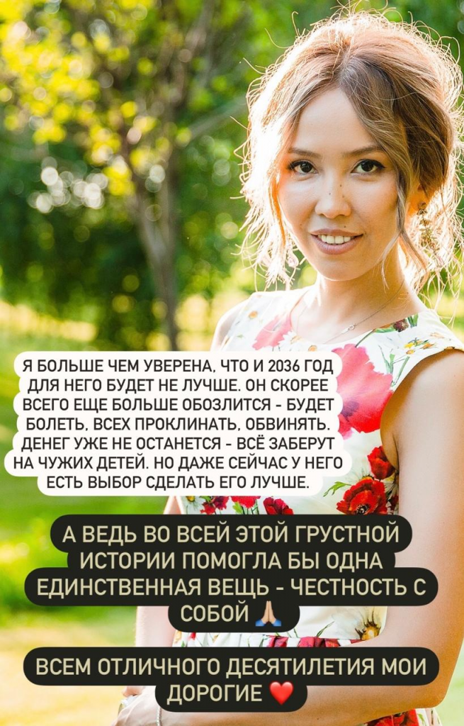 Назым Кахарман в своём Instagram рассказала, что это был единственный год, когда она была женой министра и последний их семьи с Куандыком «полным составом»: