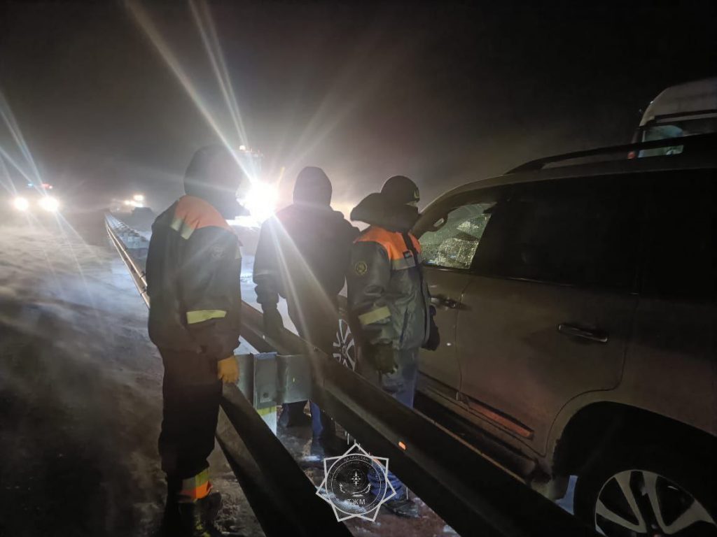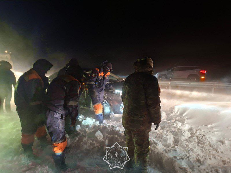 В Илийском районе на трассе Конаев – Курты спасателями эвакуированы 43 человека из них 1 ребенок и 20 легковых автомобилей, застрявших в снежном заносе.