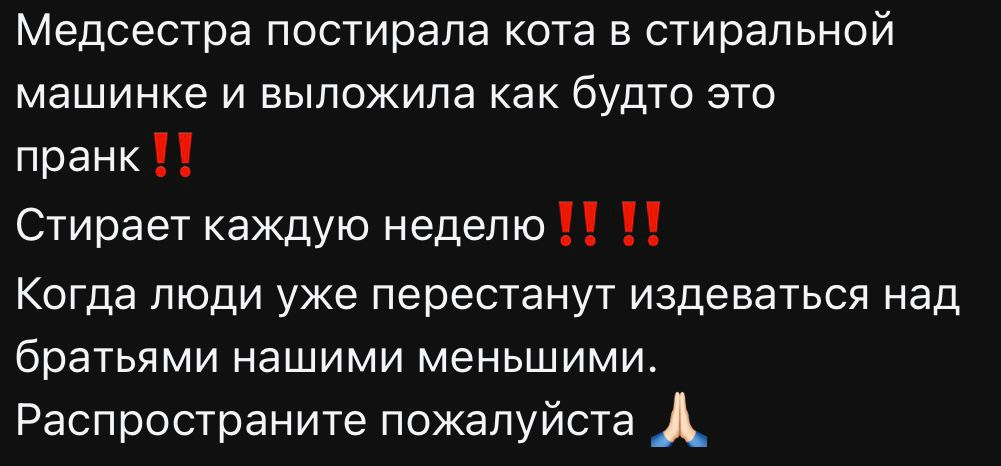 В Талдыкоргане произошёл инцидент, который вызвал возмущение пользователей социальных сетей. Женщина положила животное в стиральную машинку, запустила её и сняла происходящее на видео, сообщает Centralmedia24.