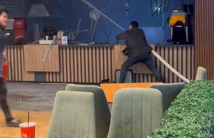 Инцидент произошел накануне на этаже с фуд-кортом. Там вдруг вспыхнул пожар и началось задымление. Пока другие бежали прочь, один из посетителей ринулся к пожарному крану внутри здания. Он развернул рукав и стал тушить возгорание. Через секунды к нему присоединился еще один мужчина.
