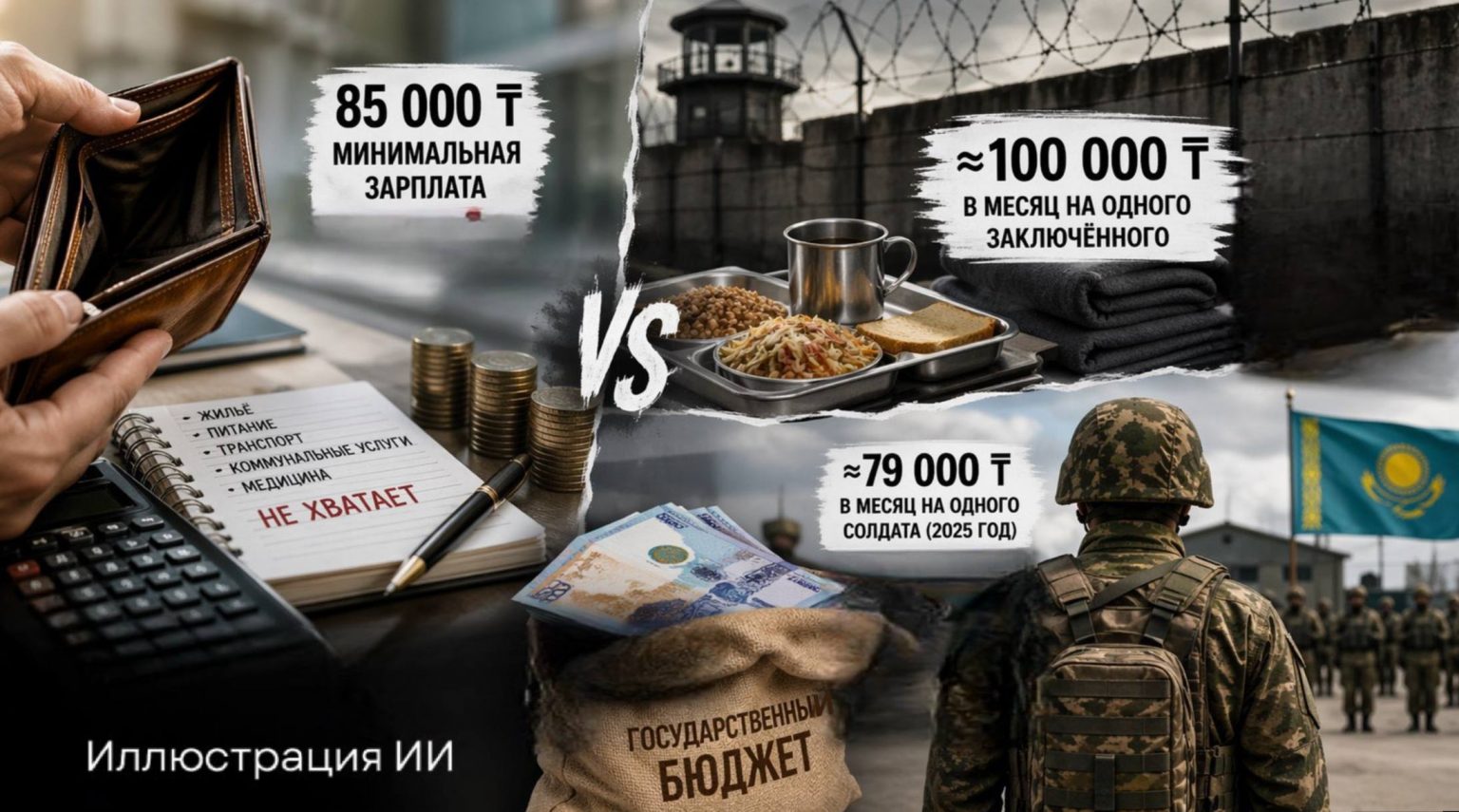 Минимальная зарплата в Казахстане уже третий год остаётся без изменений – 85 тысяч тенге. Хотя цены растут так, что даже официальная статистика инфляции не радует правительство. При этом государство тратит на содержание одного заключённого в месяц больше – почти 100 тысяч тенге. Во сколько обходятся бюджету осуждённые и военнослужащие, и что будет с нижним порогом зарплаты казахстанцев, разбирался Centralmedia24.