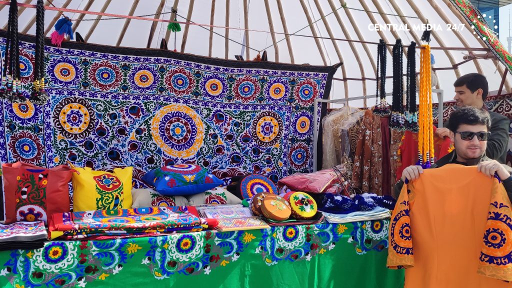 «Сам я являюсь мастером традиционной керамики, история которой насчитывает более тысячи лет. Наша главная цель здесь – представить республику и показать традиции, которые мы бережно храним и передаём из поколения в поколение. Сейчас совпали сразу два больших праздника – Наурыз и священный месяц Рамазан, что ещё сильнее объединяет народы Центральной Азии. В нашей экспозиции представлены основные виды прикладного искусства: традиционная керамика, вышивка сюзане и национальная узбекская одежда», – рассказал он.