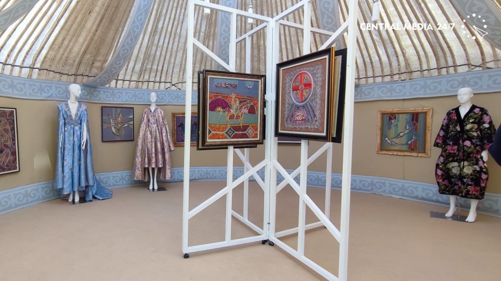 В юрте этно-дизайна «Дәстүр коды» расположилась выставка работ мастера традиционной вышивки «біз кесте» Зейнелхана Мухамеджана и коллекций этно-дизайнера Аиды Кауменовой.