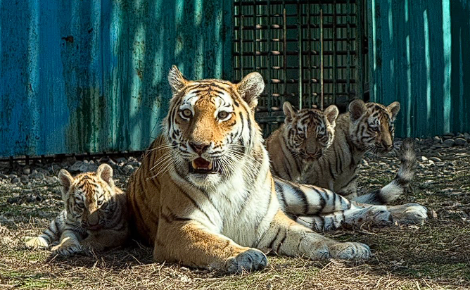 С наступлением весны тигрята начали выходить в вольер и осваивать пространство. Пока детеныши питаются молоком, но уже проявляют интерес к твердой пище и становятся более активными, сообщают в управлении культуры города.