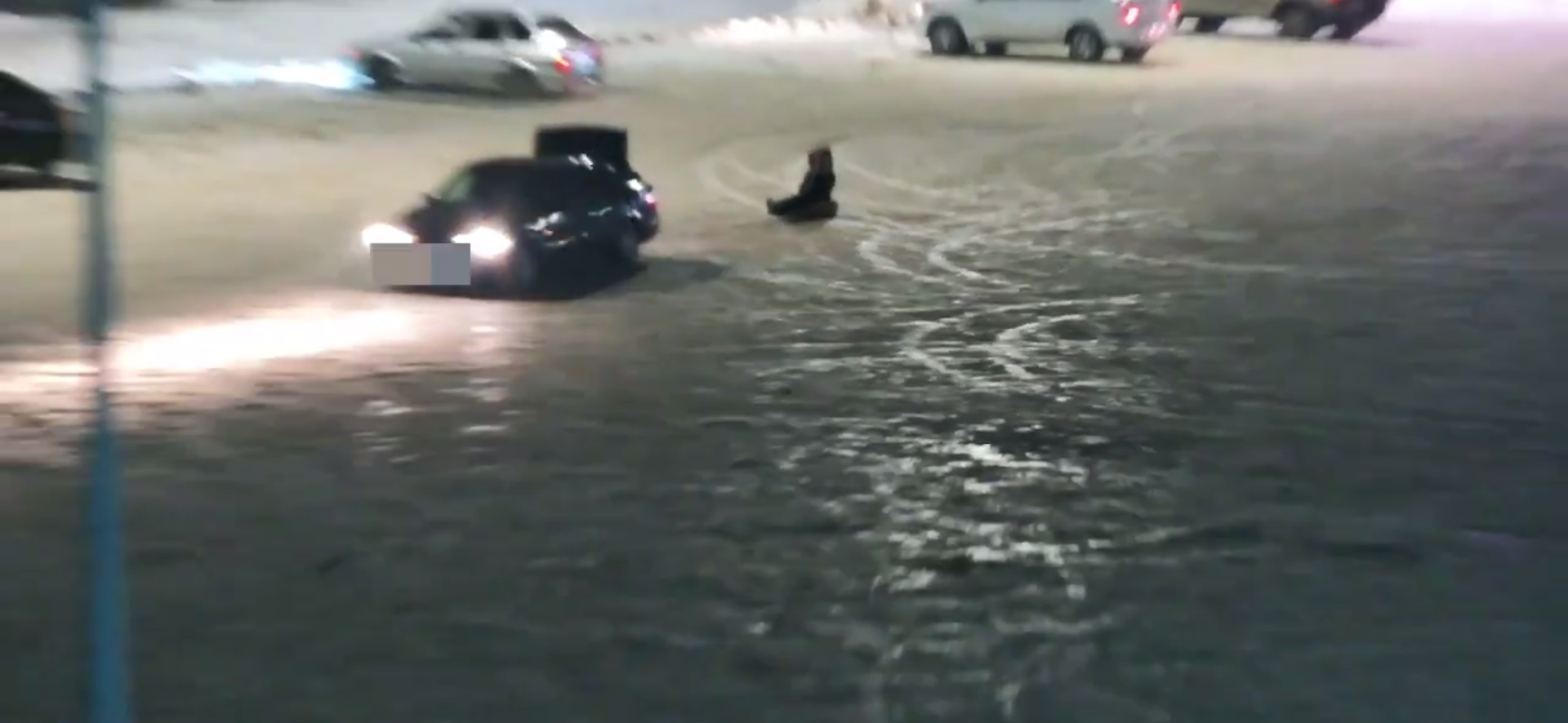 Неизвестный водитель на высокой скорости выполнял опасные манёвры, дрифтовал с поворотами без включения указателей. При этом он прицепил к автомобилю «ватрушку», катая на ней молодых людей и подвергая их жизнь и здоровье опасности.