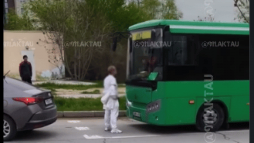 В социальных сетях распространилось видео, на кадрах которого видно, как мужчина перегородил проезд пассажирскому автобусу. В департаменте полиции Мангистауской области рассказали подробности, передаёт Centralmedia24.