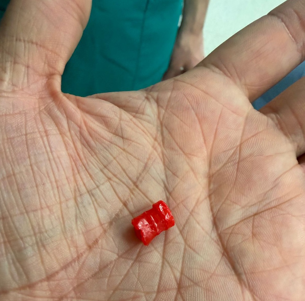 “Инородное тело попало в правый бронх, перекрыв просвет, из-за чего ребёнку было трудно дышать. Он смог прокашляться, и состояние временно стабилизировалось. Однако вечером, вернувшись домой, мальчик рассказал родителям о произошедшем. Они сразу обратились в больницу, где ему сделали рентген и КТ. На обследовании обнаружили инородное тело”, – сообщил эндоскопист Роллан Елеусинов.