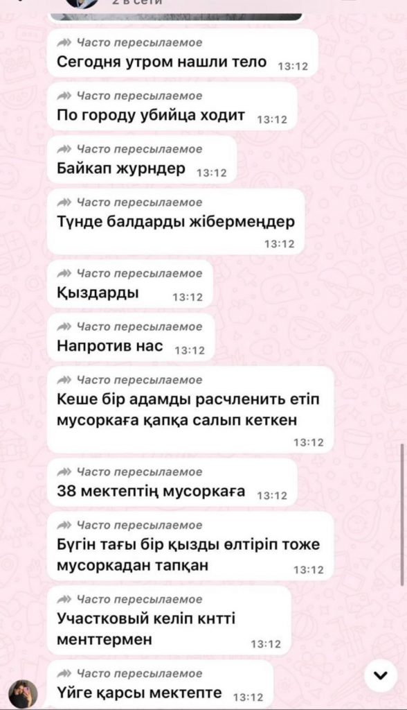 В социальных сетях и мессенджерах распространяется информация о том, что в Актобе обнаружили тела двух человек. Местные считают, что в городе якобы орудует маньяк. В департамент полиции прокомментировали информацию, передаёт Centralmedia24.