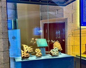 “В экспозиции представлено около 200 артефактов из фондов музея. Раздел городской культуры знакомит с предметами быта и ювелирными украшениями, а также фрагментами шелковых тканей парадной одежды высшей кочевой знати династии Чагатаев, найденными близ села Шенгельды в Алматинской области. В разделе военного искусства представлены элементы вооружения. Блок о государственном устройстве того времени раскрывает систему управления Алтын Орды, генеалогию правителей и историческую преемственность с Казахским ханством”, — сообщили в ведомстве.