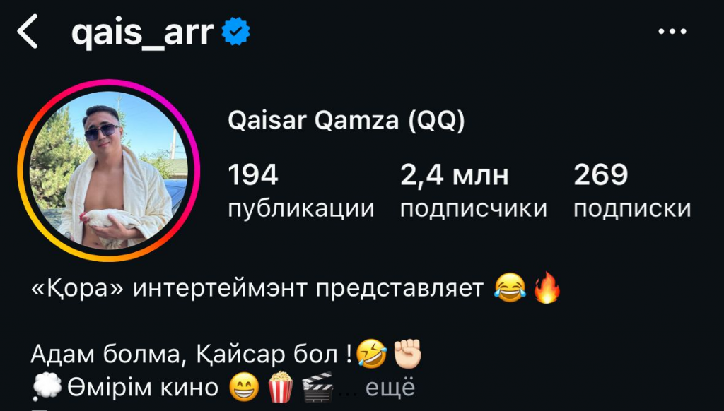 Аудитория Кайсара в социальных сетях насчитывает миллионы пользователей. В Instagram за ним следят более 2,4 миллиона человек, а в TikTok количество подписчиков превышает 340 тысяч. Камза называет себя тревел-блогером и большую часть контента создаёт за пределами Казахстана.