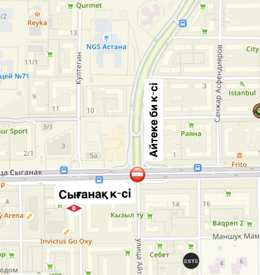 По данным местного исполнительного органа, в связи с обустройством светофорного объекта на пересечении улиц Сыганак и Айтеке би с 29 апреля по 13 мая 2026 года движение частично ограничат.
