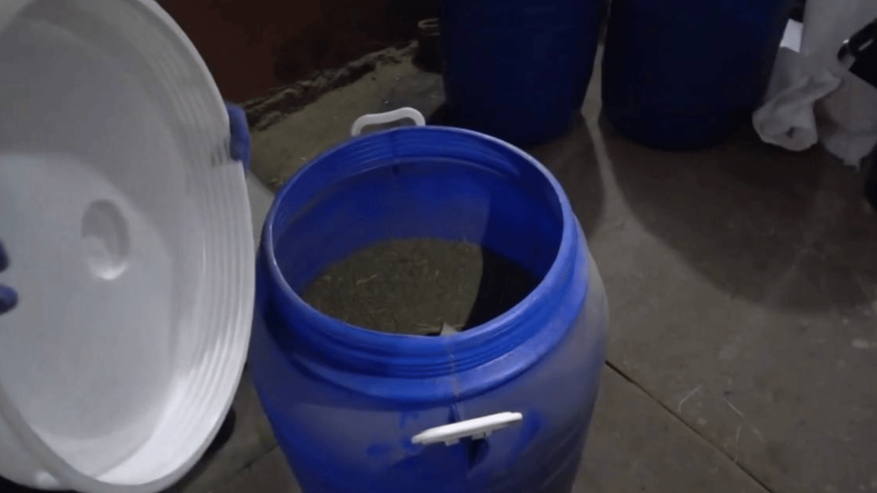 - шесть пластиковых бочек объёмом по 120 литров (на половину заполненных аналогичным содержимым);