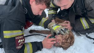 Хозяин животного поблагодарил спасателей за помощь его питомцу.