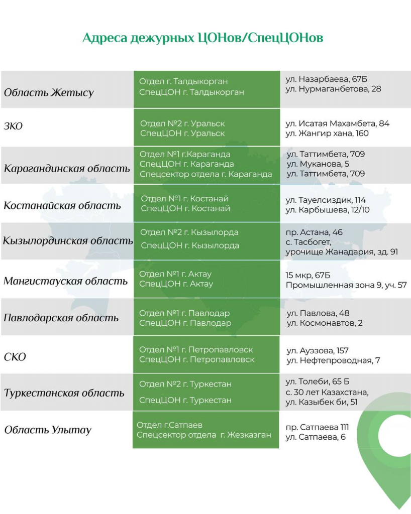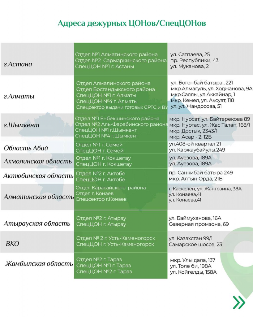 C 3 января центры будут работать по новым адресам в Алматы, Шымкенте, Семее, Актобе, Усть-Каменогорске, Уральске, Караганде, области Улытау. В Астане адрес изменят с 5 января.