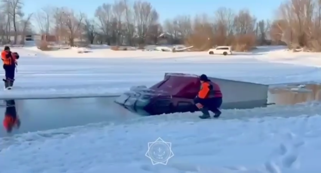 Машина оказалась на дне реки Чаган. Её веса не выдержал тонкий лёд, сообщает Centralmedia24.