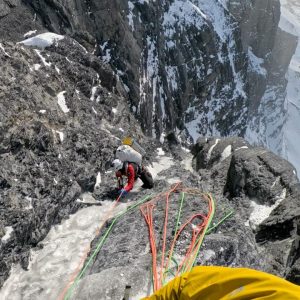 Восхождение заняло два с половиной дня. Команда шла первой в сезоне — без следов предыдущих восходителей, прокладывая путь и очищая скалы от снега. В первый день прошли две трети стены и заночевали на «Бивуаке смерти» — без палатки, в обвязках, пристёгнутыми к точкам страховки. Во второй день преодолели верхнюю, наиболее техничную часть, достигли вершины и начали спуск. На третий день благополучно завершили спуск.