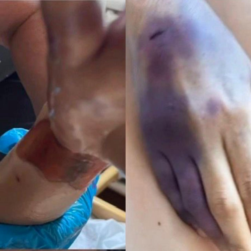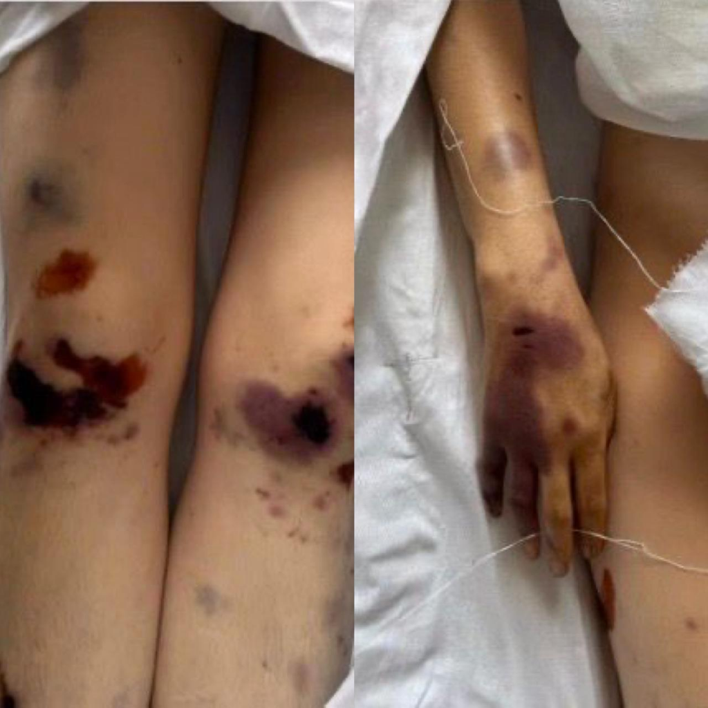 “У неё отсутствовали зубы, всё лицо было в крови, имелись кровоподтёки в области ушей, а также ссадины и кровоподтёки в нижней части лица, сотрясение мозга. Кроме того, были зафиксированы повреждения нижней части черепа, поясничных дисков, а также синяки и ссадины по всему телу. Однако в первой экспертизе были отражены не все эти повреждения”, – заявил адвокат.