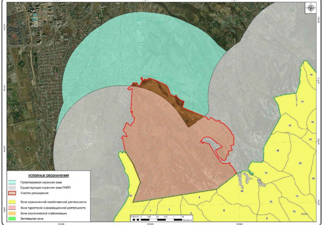 Сейчас площадь Иле-Алатауского ГНПП составляет 200 160 га. Если госорганы примут положительное решение, территория нацпарка увеличится почти на тысячу гектаров.